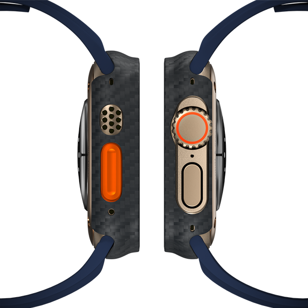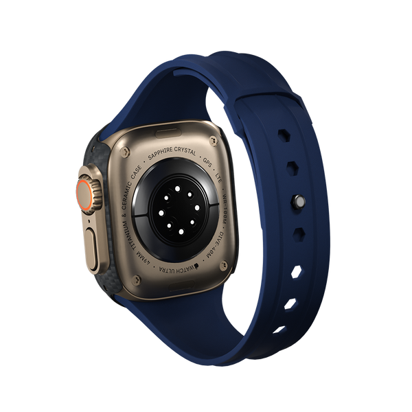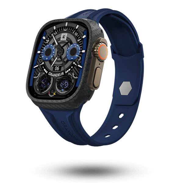 Carbon Fiber Apple Watch Case - Deep Navy Strap