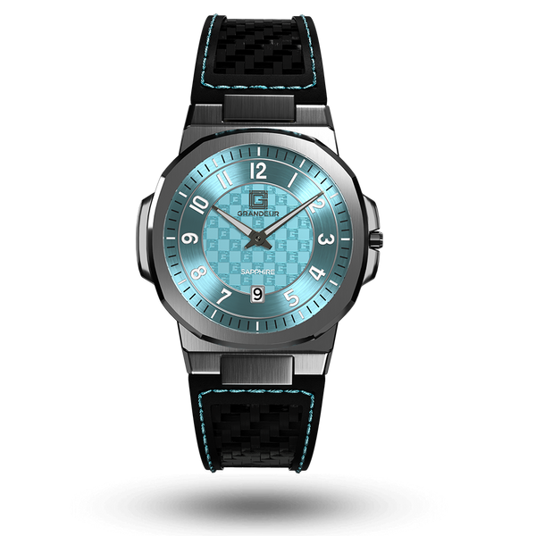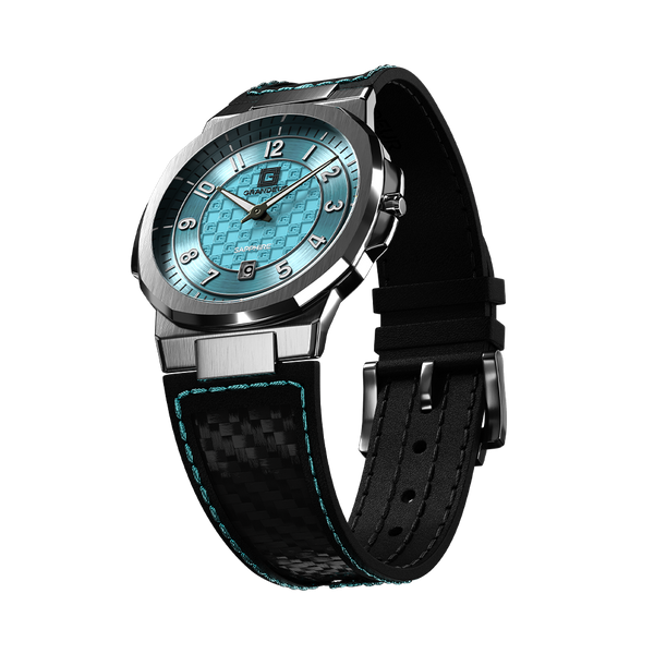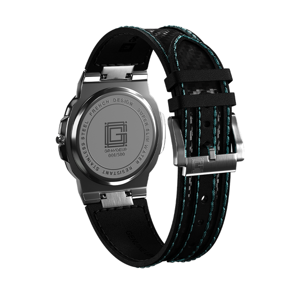 Embrace sophistication with the Grandeur Éclat Collection, a symphony of craftsmanship and style. Each watch features a 40 mm stainless steel case that elegantly combines a brushed and polished finish. The distinctive dial, protected by anti-reflective sapphire glass, complements the precise Miyota GM17 Quartz movement. A luxurious carbon fiber and leather strap anchors the timepiece, which maintains a light feel at 64 grams and offers 5ATM water resistance, perfect for the discerning individual.